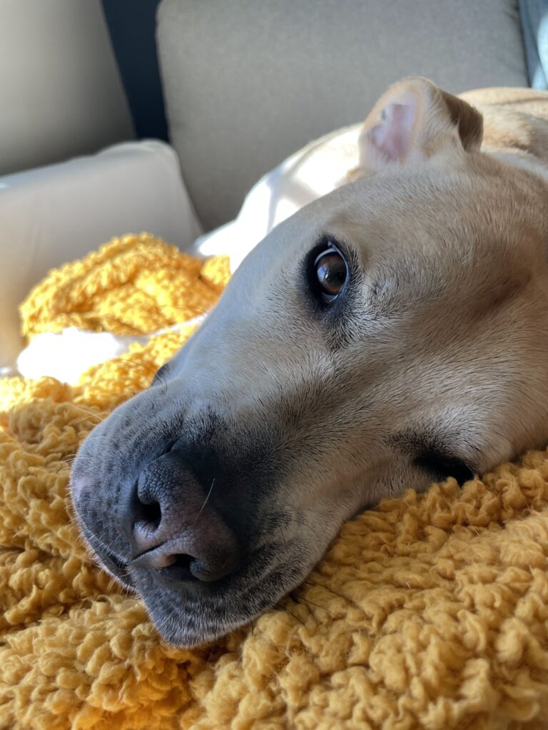 My family and I also lovingly call him “Bennie Boi”, and he is our 80lb cuddlebug, “American Shelter Breed” rescue pup. Truly, the best officemate I could ask for!